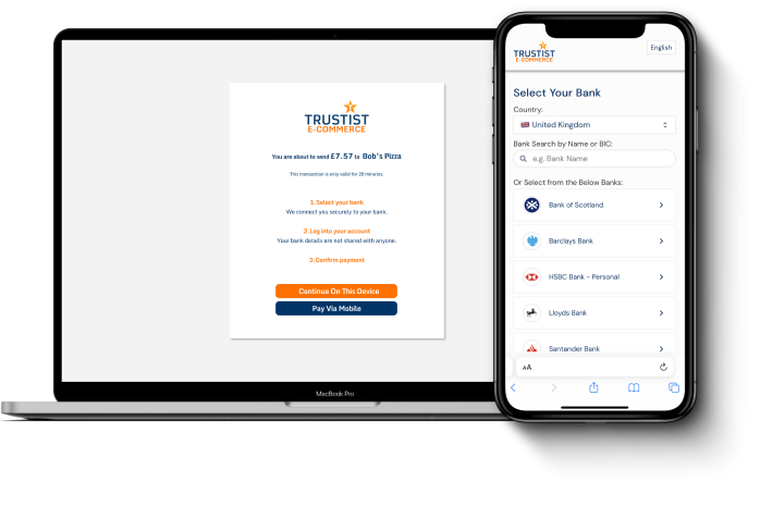 TrustistEcommerce transactions are processed by the consumer’s bank through Open Banking, making them safer than card payments which can be easily stolen or lost.